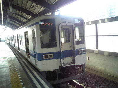 | 西新井駅 大師線 大師前行き 7:12発 8000系の2両で、ワンマン列車でした。 |