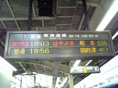 | 「富士」と「はやぶさ」の連結部 1〜6号車が「はやぶさ」、7〜12号車が「富士」です。 |
