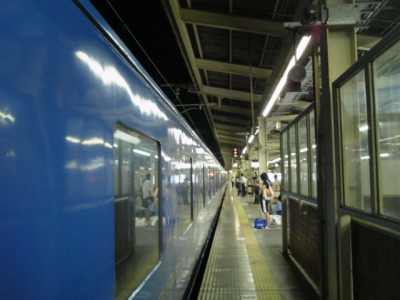 | 大阪駅 1:06着 1:08発 正確には、5分遅れで1:11着でした。 深夜にも関わらず、結構乗ってくる人がいて驚きました。関西−九州 間のブルートレインが無くなってしまった影響でしょうか・・。 |
