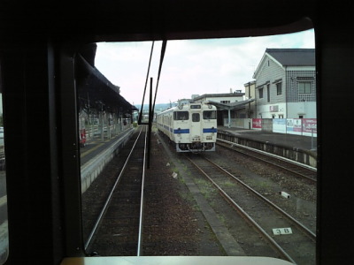 | 9:06 (車内前方から写す) 日田駅到着 |