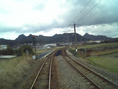 伊万里駅を出ると、二手に分かれます。左手が有田方面、右手が佐世保方面です。 |