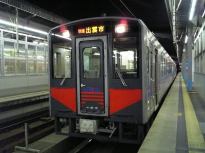 | 米子を出ると、あたりも真っ暗になってしまい、宍道湖なんて何も見えませんでした。 なお、米子駅の一つ隣の安来駅から、島根県に入っています。 |