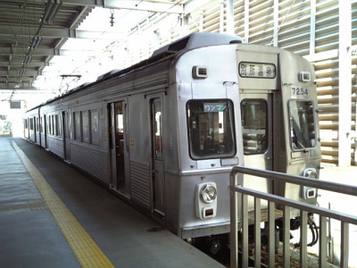 | 上田電鉄 上田駅 別所温泉行き 10:32発 てっきり、先日投入されたばかりの1000系がくるのかと思っていたら、写真のとおり7200系でした。この7200系は、1000系の投入により、今年度中に営業運転を終了するそうです。 |