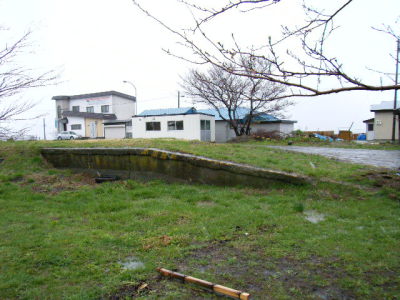| かつて松前駅があったことを示す、記念碑がありました。 ホームの跡も確認できました。(下) |