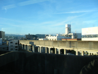 | 6:02 鳥取駅発車直後です。 鳥取駅周辺は高架線になっています。 右手に、因美線 の線路が分岐していきました。 |