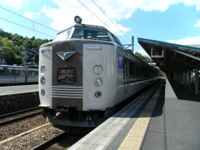 | 特急「はしだて6号」 京都行き 天橋立駅 13:52発 この 「はしだて」 ですが、現在は 183系 (485系からの改造車)で運行されていますが、来春には新型車(287系)で置き換えられることになっています。 |