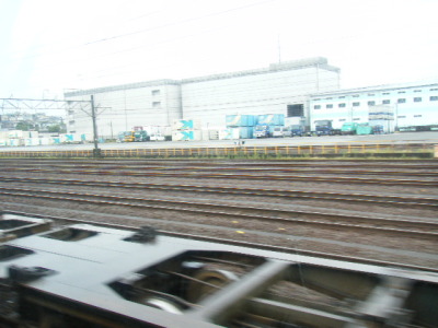 | 8:59 梶ヶ谷貨物ターミナル駅 を通過 長いトンネルを抜けて地上に出たと思ったら、梶ヶ谷貨物ターミナル駅 を通過しました。そういえば、トンネル内でも、貨物列車 とすれ違いました。 |