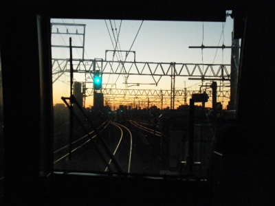 | 6:20、市川駅停車中 東の方から明るくなってきました。 |