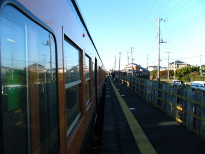 | 7:35、土気−大網 間 だんだんと長閑な風景になってきました。 |