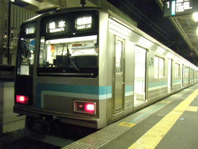 | 横浜線 八王子駅 茅ヶ崎行き 19:23発 この列車は、相模線への直通列車です。 |