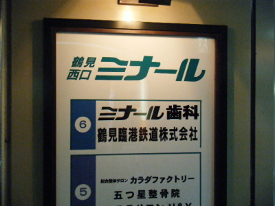 | 西口駅ビル(ミナール)の入口に、なんと 鶴見臨港鉄道株式会社 の文字がありました。 鶴見臨港鉄道 は、鉄道路線こそ国有化で手放しましたが、鶴見駅西口付近の不動産をいくつか所有する企業として、今でもその名が残っています。 |