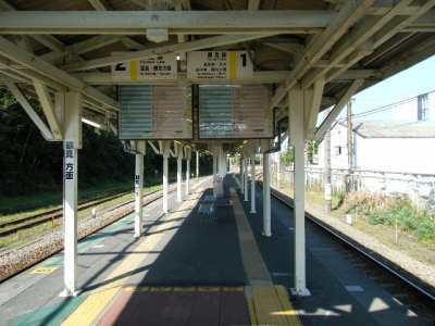 | 改札口からホーム側をのぞむとこんな感じです。 停車中の電車は、下り・大川行き、8:00発です。 |