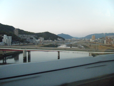 | 広島駅 を発車(18:06)するころにいは、さすがに日も暮れてきました。 |