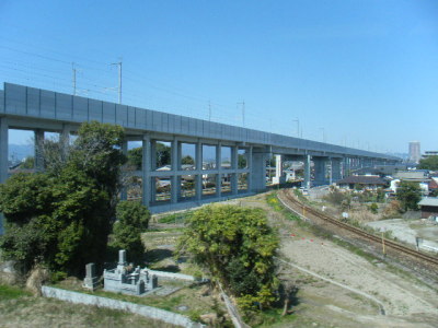 | 12:35 明日乗車する予定の 九州新幹線 の高架線 が見えてきました。 |
