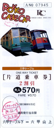 本来なら 六甲ケーブル下駅 まで 片道570円 ですが、「スルッとKANSAI 3dayチケット」 を持っているので、460円 に割引になりました。 |