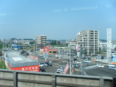 | 終点の 泉中央駅 が近づいてきました。 右前方に、ベガルタ仙台 のホームスタジアムである ユアテックスタジアム仙台 が見えています。 |