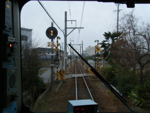 | 近鉄四日市行き との行き違いです。 泊駅 というと、JR西日本 の 北陸本線 と 山陰本線 の駅を思い浮かべてしまいますが、こんなところにもあったんですね。 |
