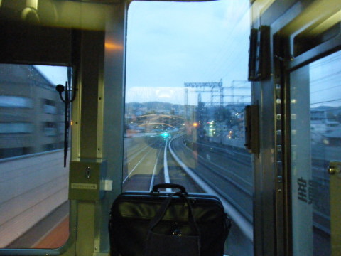 | すみません、この写真ではよくわからないと思いますが、進行方向右側に 車両基地(東花園検車区登美ヶ丘車庫) があります。 |