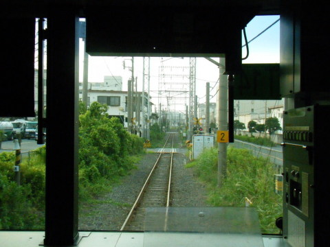 2つ目の踏切、日本道路踏切 から 大川駅 の方向を写しています。 |