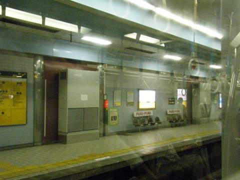 この写真で、お分かりいただけるでしょうか。千日前線 は、8両編成 にまで対応できるように建設されているそうです。ですが、現時点では 4両 の列車しかないため、ホームの使われていない部分には柵がしてあります。いつの日か、この 千日前線 で 8両 の列車が走る時代は来るのでしょうか? |