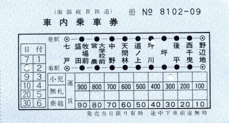 | 南部縦貫鉄道 「30周年記念乗車券」 |